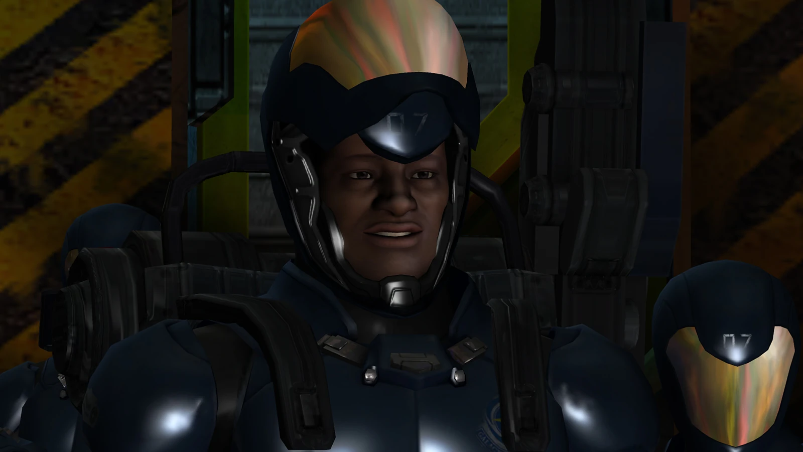 Su traje, al igual que el del resto de soldados, es azul con visores amarillos, están equipados con una metralladora, Pistolas de Hielo y un cañón de plasma que se presume que sea un prototipo basado en el rayo de plasma de Samus (en el juego esta arma se refiere como plasma; no especifica si es una pistola, rilfe o un cañon). Físicamente es un hombre de piel oscura, calvo (aunque su cabello es negro debido a que en algunas escenas del pasado se le ve con muy poco cabello) y con mucha masa muscular, además es alguien alto, midiendo alrededor de 2.02 metros de estatura.