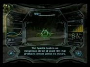 - A diferencia de las plantas de Metroid Prime que se pueden escanear y no aparecen en el banco de datos (como el tallo guía, la estrella ígnea, etc.), los arbustos spaikk se mueven al dispararles y al tocarlos.