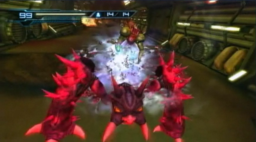 - Un ataque cuerpo a cuerpo que permite a Samus saltar sobre su enemigo, rellenar el medidor de carga y desplegar un poderoso asalto.