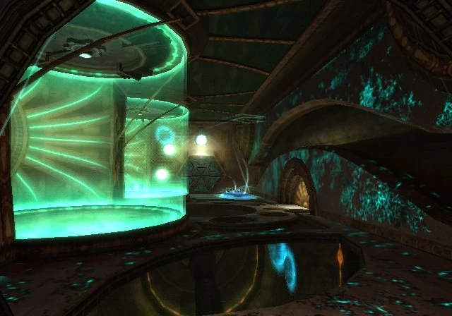 Es una habitación compuesta principalmente por un ascensor en cuyas paredes se encuentran dos cadáveres de Parásitos Reina, que conecta dos plantas y da acceso a los xenolaboratorios. Samus debe activar el ascensor usando un Escáner de Mano y subirse en él para acceder a la segunda planta, que contiene dos Unidades de Contención y cuyo suelo es de cristal, que dejan ver unos conductos inferiores.