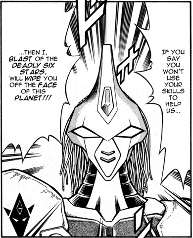 Blast es uno de los líderes del Cuerpo de Greed, miembro de las Seis Estrellas Mortales. Aparece en el manga Metroid EX: Samus y Joey.