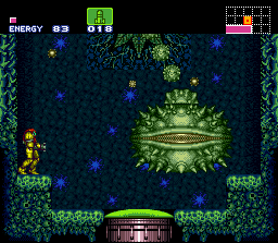 Esta planta se mueve constantemente por todo el escenario, golpeando todo a su paso y lanzando esporas. Samus debe esperar a que se detenga y abra su punto débil, mismo que es vulnerable contra misiles. |