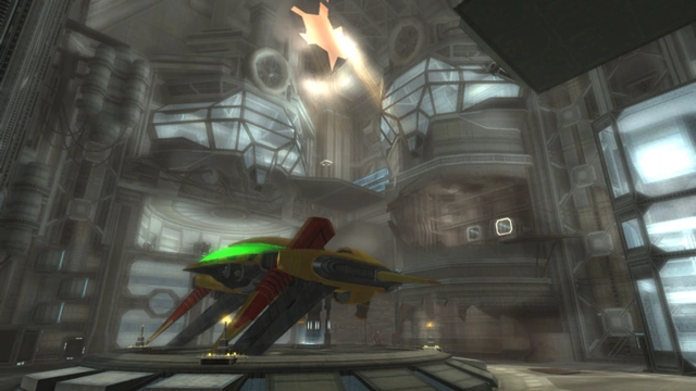 Es una zona de aterrizaje construida por la Federación Galáctica. Es una zona totalmente mecanizada con un sistema de mejora de naves capaz de proporcionar armamento a las naves espaciales estacionadas en la sala. El mecanismo es controlado por un terminal en el suelo. El techo posee unas compuertas que abren o cierran el acceso de las naves a esta sala, las cuales son controladas por un terminal en una sección superior. Una de las secciones está bloqueada por un campo de fuerza controlado por una célula de energía, ubicada en una cámara de la habitación. Un ascensor se encuentra en una pared, que da acceso a una sección más alta con conductos de ventilación, cubiertos con paneles metálicos.