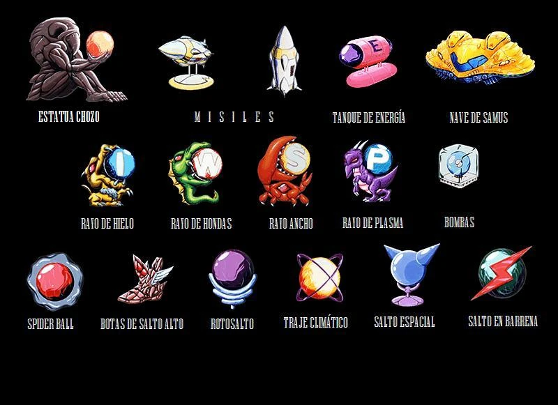 - Traje. Es el traje habitual de Samus y lo lleva desde el principio.