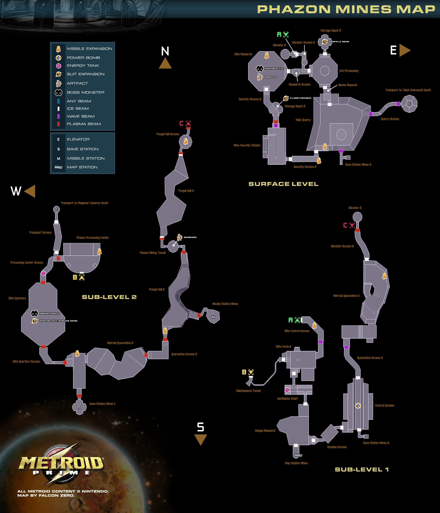 Las Minas de Phazon están claramente divididas en tres partes, llamadas en el juego como Nivel 1, Nivel 2 y Nivel 3.