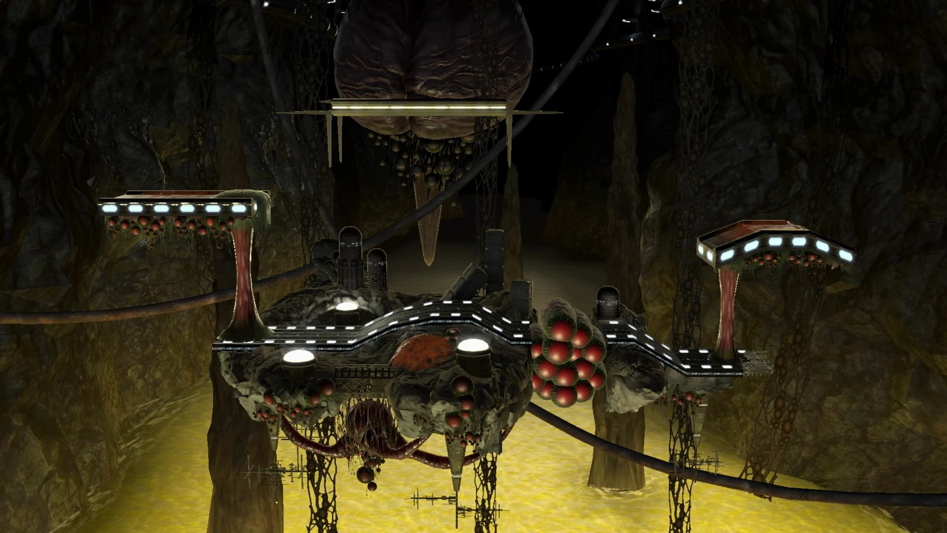 Este escenario es bastante complicado a la hora de pelear. Hay mareas de ácido que suben y bajan constantemente, causando gran daño. Sin embargo, cuando el ácido se encuentra elevado funciona como una especie de "cojín", evitando que los jugadores se caigan del escenario y pierdan, pero causando mucho daño. Las plataformas son sujetadas por una especie de columnas orgánicas, que pueden ser destruidas. De igual manera, el escenario tiene una parte débil que puede romperse.