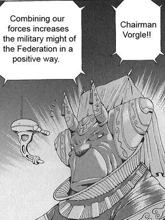 Poco se sabe de Vorgle, solo se conoce que es un Ceratópsido. Durante una reunión con el consejo de la Federación Galáctica que tenía como objetivo decidir los planes de la Federación respecto a los piratas espaciales en Zebes, Vorgle anuncia que las fuerzas armadas de la Federación de distintos planetas deberían unirse para enfrentarlos.