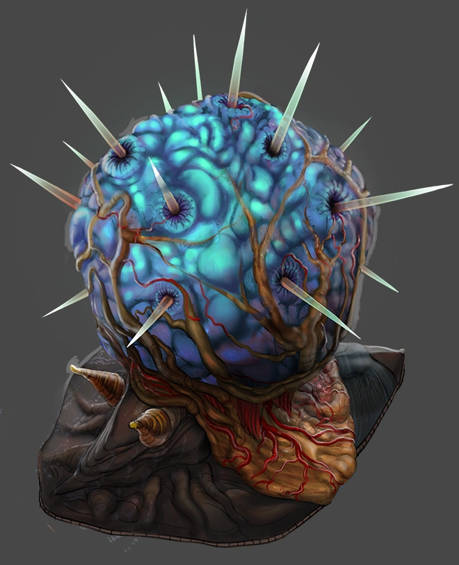 Esta criatura tiene las cualidades de una planta y las de una babosa. Si se siente amenazado, saca sus púas dorsales y las lanza hacia su enemigo, que inmediatamente regenera para volverlas a lanzar; estas espinas persiguen al objetivo. Puede desplazarse por paredes y techos. Explota al contacto.