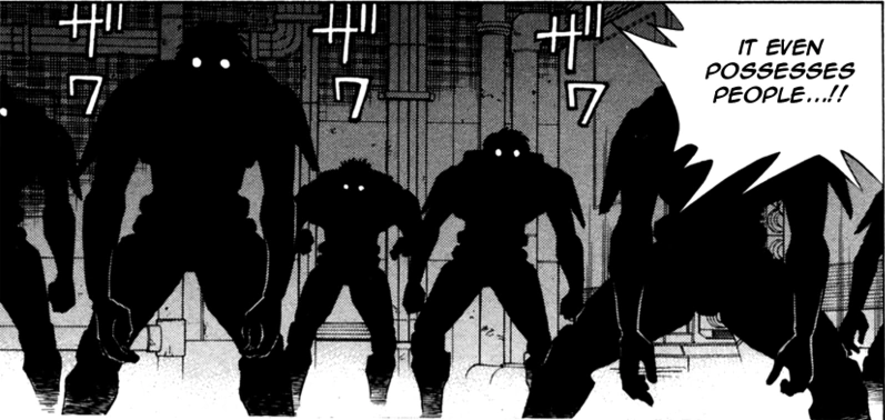 En el capítulo 3 del manga, Samus, tras encontrarse con Klaus Schneider y su equipo, se dirige al Cuarto del Generador de la base para restaurar su energía. La sala está llena de cadáveres que despiertan al estar poseídos por la Niebla Negra. Samus se enfrenta ella sola contra varios Soldados Oscuros y logra eliminar a todos.