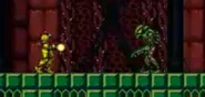 En Brinstar y Norfair, Samus debe buscar a los minijefes en sus escondites y derrotarlos. Busca los corredores que llevan a sus escondites. Recupera tu energía y avanza.