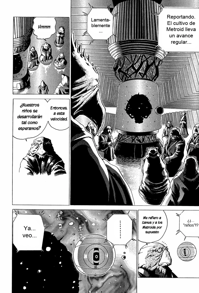 - ↑ "Mother Brain no solía ser peligrosa, y era una inteligencia artificial indispensable que sirvió como el centro de la avanzada civilización Chozo. Sin embargo, tratándose de una IA independiente en extremo superior, de Mother Brain brotaron pensamientos peligrosos y se salió de control." —Yoshio Sakamoto (Metroid: Zero Mission)