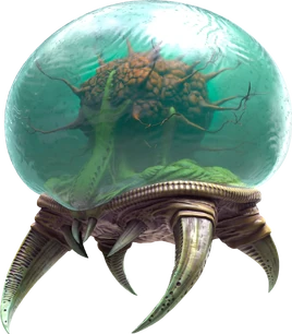 - 通常種のメトロイドに生体改造が施され、培養された派生種。緑色の皮膜、本体下部に生え揃った牙といった特徴は通常種と共通だが、細胞核が1つしかなく、メトロイドモドキを彷彿とさせる外観となっている。本体正面、細胞核の前面には基部から伸びた骨のような特徴的な構造物も確認できる。