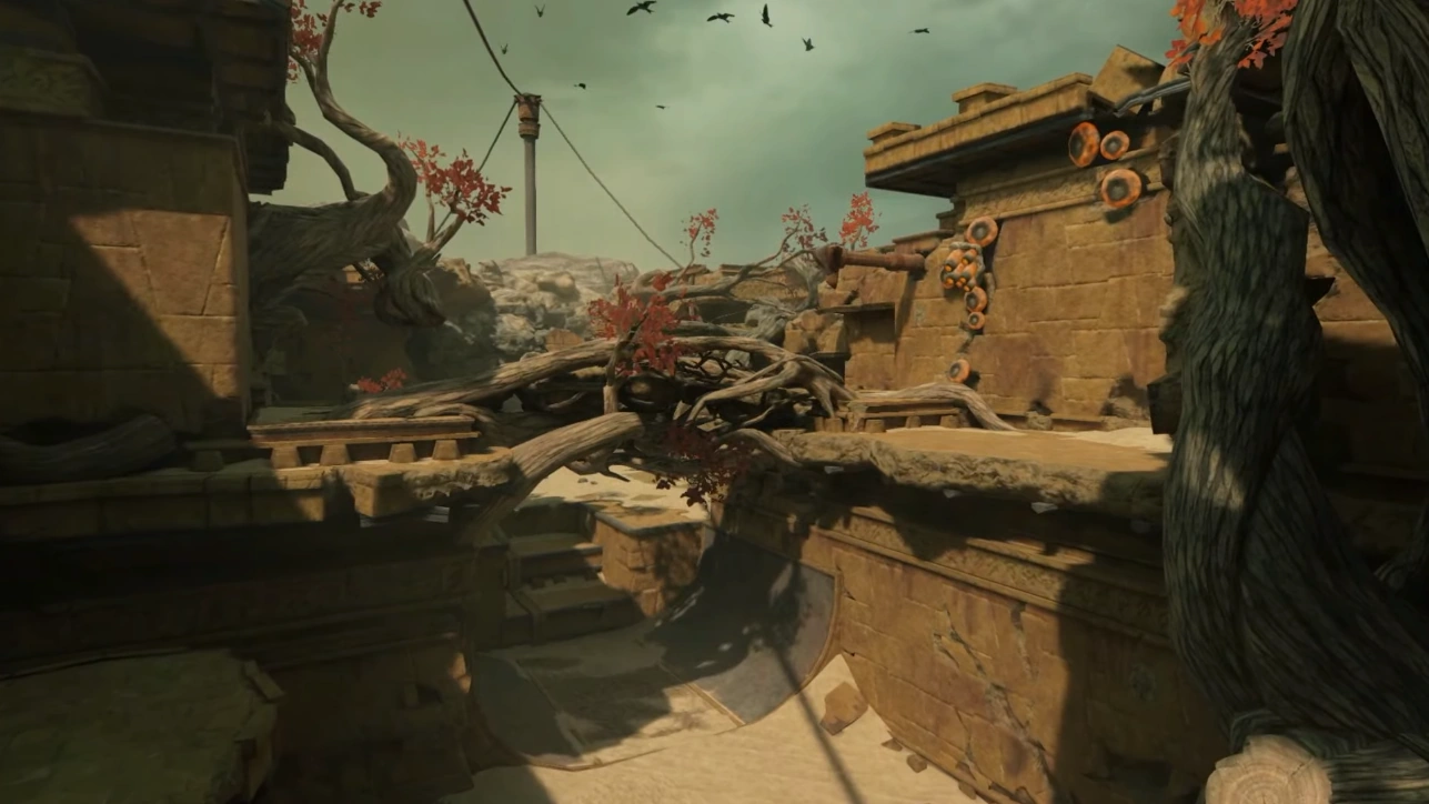機械文明を遠ざけ、自然との共存を望んだ鳥人族の都市の遺跡。遺跡の壁面には彼らのメッセージが刻まれている。