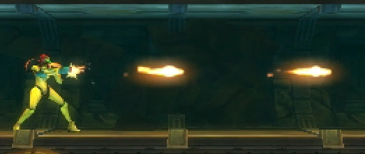 サムスの生体エネルギーを変換して発射する基本的なビーム攻撃。一発の威力は低いが、弾の速度が速く連射が可能。