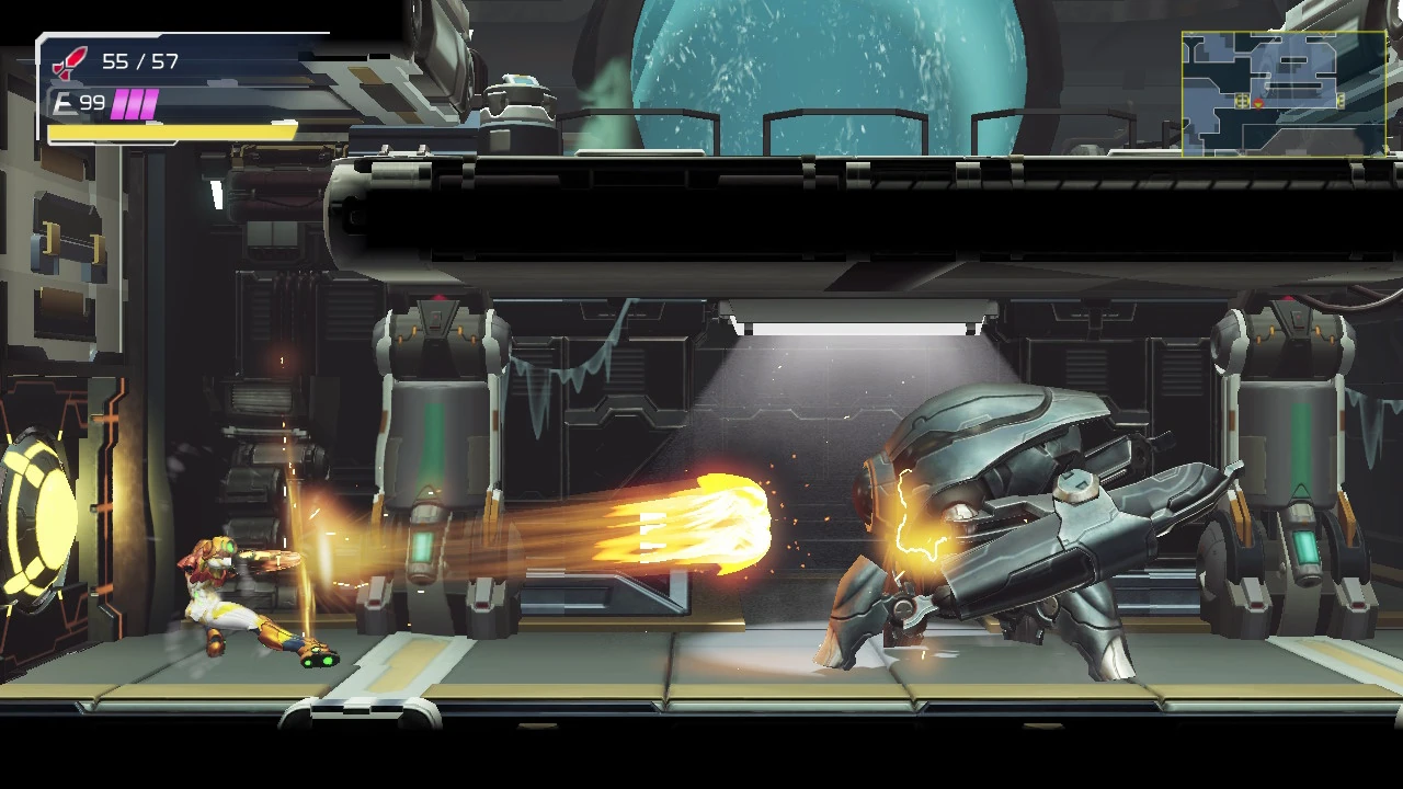 弾き返したあと、サムスは自動的に敵に照準をあわせます。