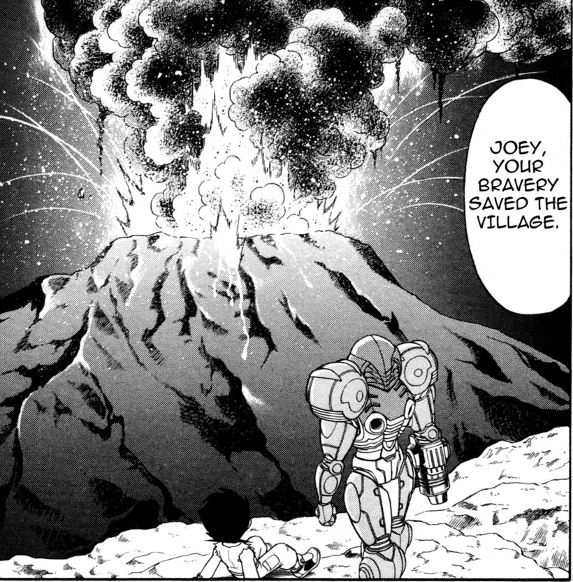 Самус и Джоуи издалека смотрят на взрыв.