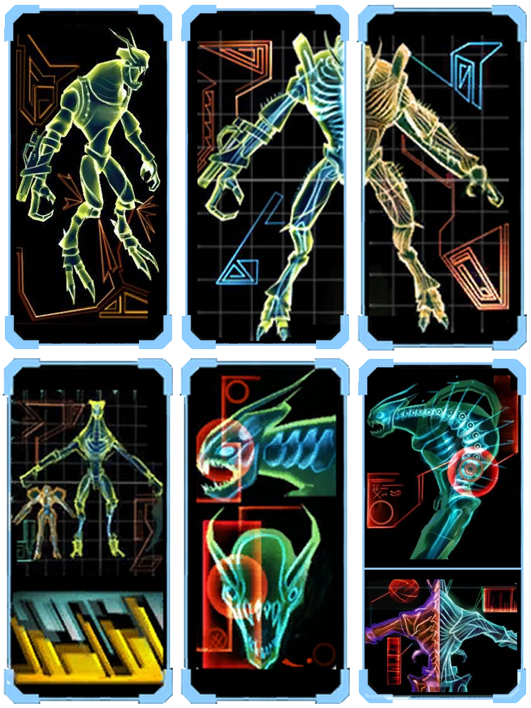 Различные сканированные изображения физиологии Космических Пиратов из Metroid Prime.