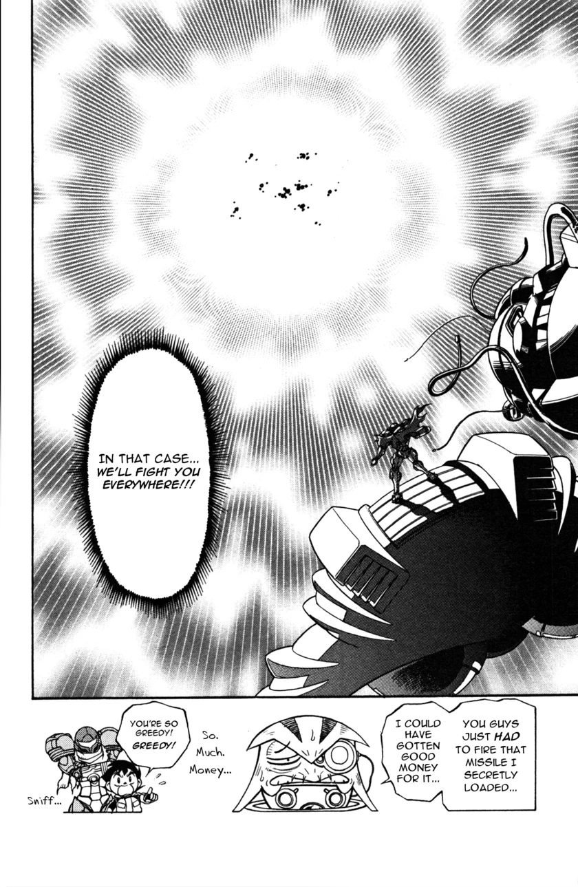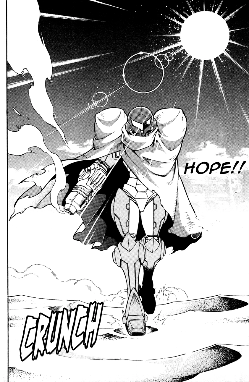 - В главе 12 Самус показывает Дэнжело неодобрительный жест (сжатый кулак с опущенным вниз большим пальцем) и спрашивает его: "Возражения будут?" Это однозначная ссылка на фирменную фразу Командующего Адама Малковича "Возражения будут, Леди?". Так как точно такой же жест повлялся в вышедшей гораздо позже игре Metroid: Other M, то, возможно, Ёсио Сакамото либо черпал вдохновение из этой сцены манги, либо сам принял участие в ее создании.