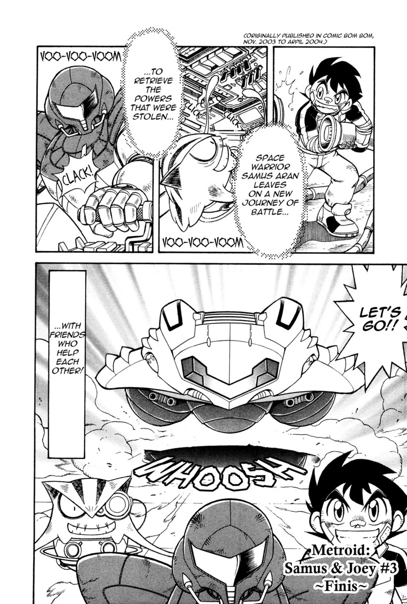 Манга Samus and Joey печаталась в 17 выпусках ежемесячного журнала Comic Bom Bom с декабря 2002 г. по апрель 2004 г., после чего ее сюжет был продолжен в манге Metroid EX: Samus & Joey (12 выпусков с мая 2004 г. по апрель 2005 г.). Таким образом, полный период выпуска этой манги составляет 29 месяцев. В отличие от Samus and Joey, Metroid EX не была издана в виде коллекции.