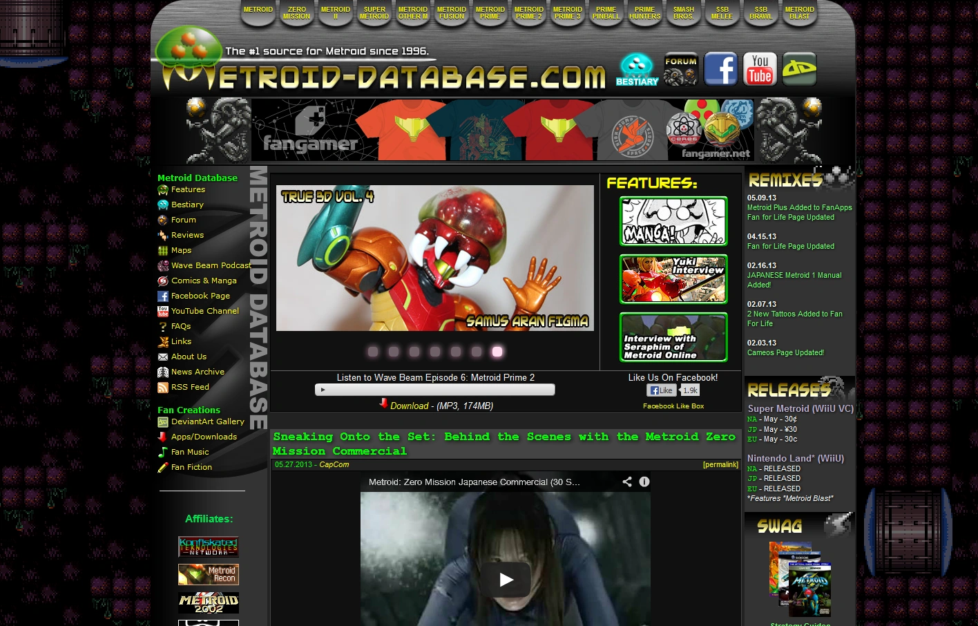 Внешний вид сайта Metroid Database по состоянию на 06.06.2013.