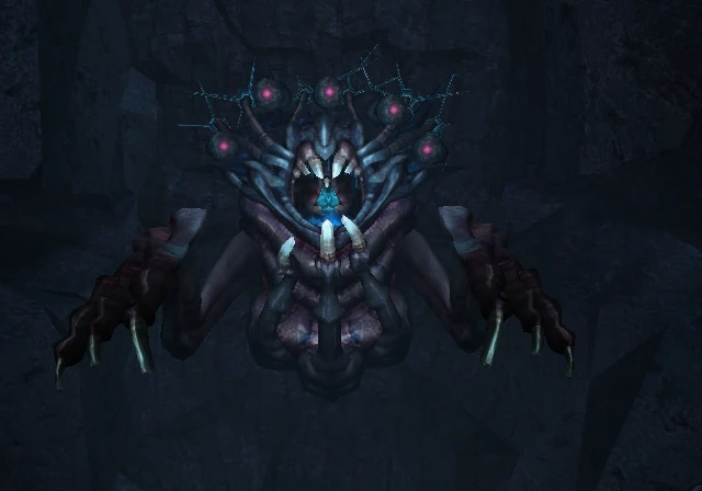 The Aazelion is a large life form native to the planet Phaaze, and appears in Metroid Prime 3: Corruption. It has five eyes, along with a pair of claws that it uses to capture and then hold its prey as it is slowly pulled towards its giant open jaws. It was seen living in the wall of the Hatcher Shaft, waiting for prey, such as Samus, to fall into its personal space. It is most likely a species of passive predators, waiting for potential prey to come by it, based upon its "observed" sedentary lifestyle. Its tongue, which appears to be an inner, secondary jaw, appears to be a weak part, and is for some unknown reason directly attached to its five eyes, since they are seen exploding as it is damaged.