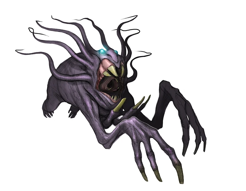 It's called the Aazelion- a mole/ ant-lion-like monster that lives on the planet Phaaze. It uses its long whiskers to root and suspend itself into the side of a chasm. It’s[sic] grasping front claws and teeth fingers help it to capture and feed on anything that falls or ventures into the chasm.
