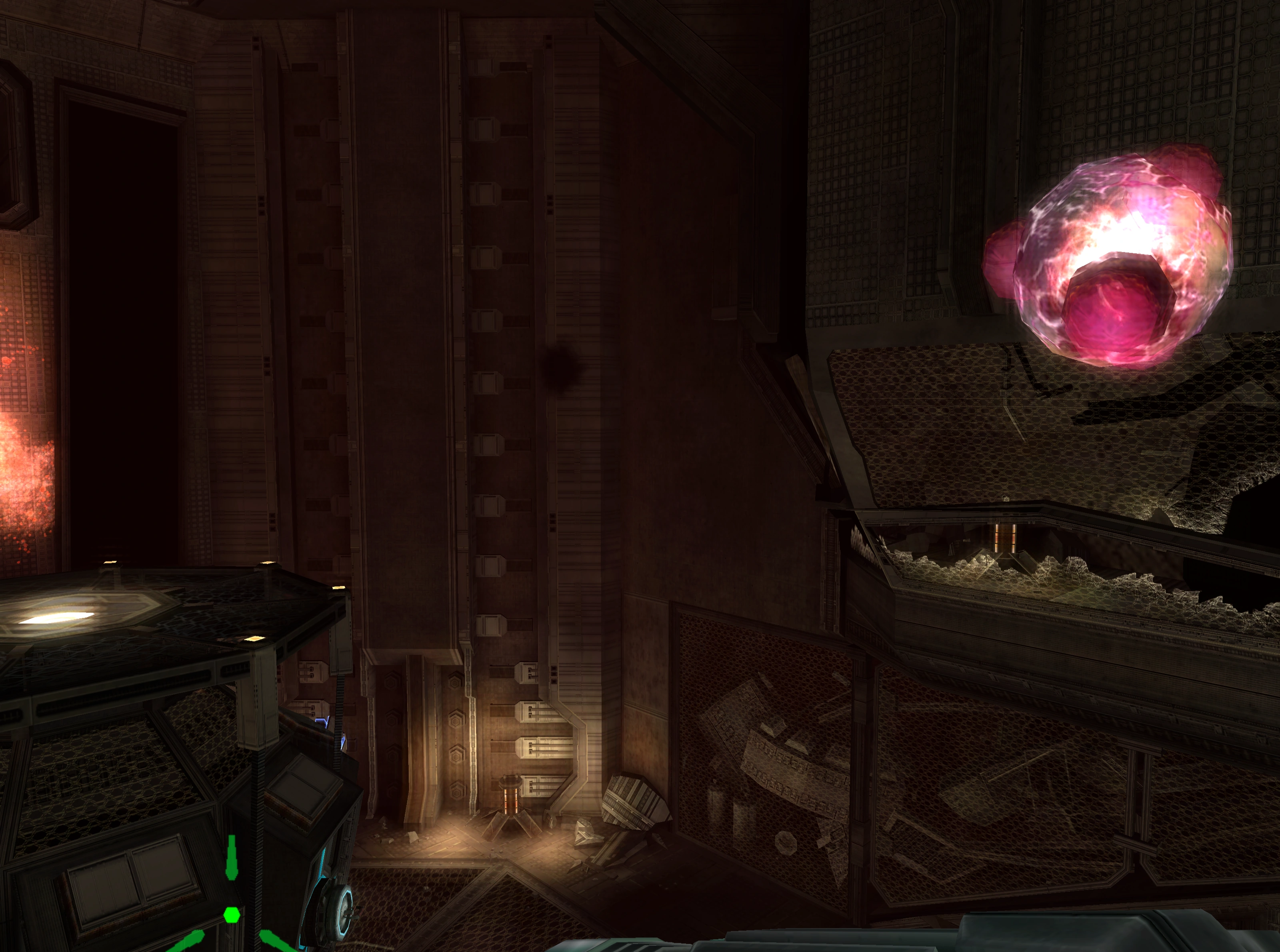 In several rooms of the Wrecked Ship, immobile Atomic-like entities can be found pulsing with a bright green color alongside their containers. These remain encased even after the ship is reenergized. The Atomics' connection to the Wrecked Ship in this game hints at a stronger link to the Chozo than the ones from Zero Mission, which are seemingly tied to the Space Pirates.