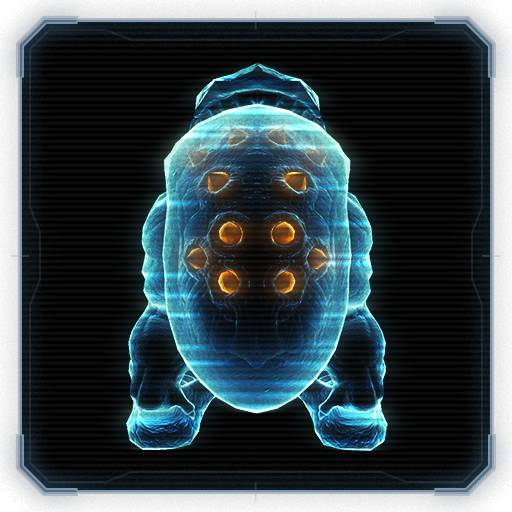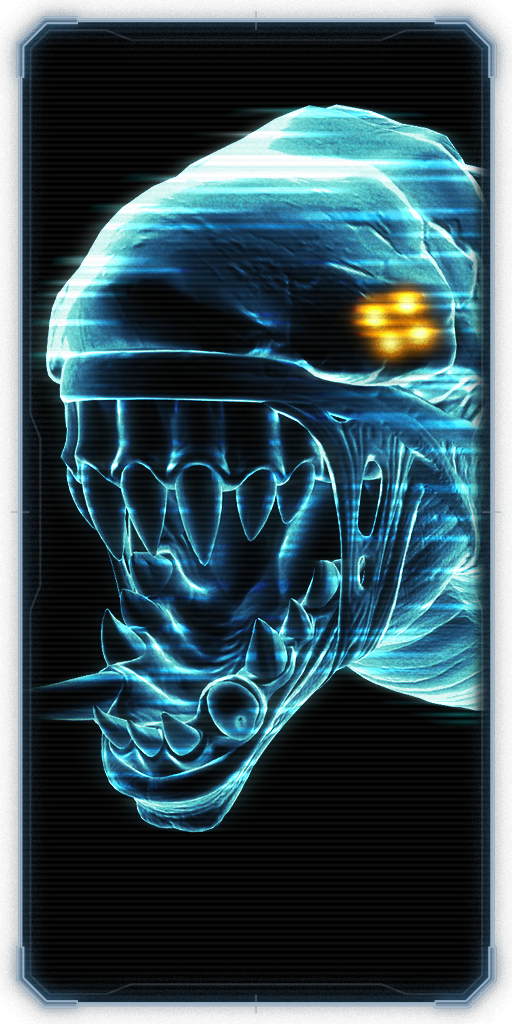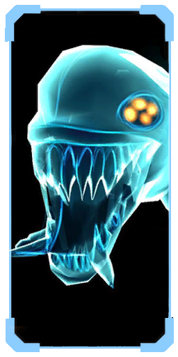 "The Baby Sheegoth is a glacial predator with an ice shell that protects its vulnerable dorsal area. Young Sheegoths grow a resilient shell of ice on their backs. This serves to protect a layer of vulnerable flesh that eventually becomes a ridge of energy-absorbing crystal. Powerful hunters, they fire bursts of ultra-cold gas at potential prey, then feast on their frozen victim."