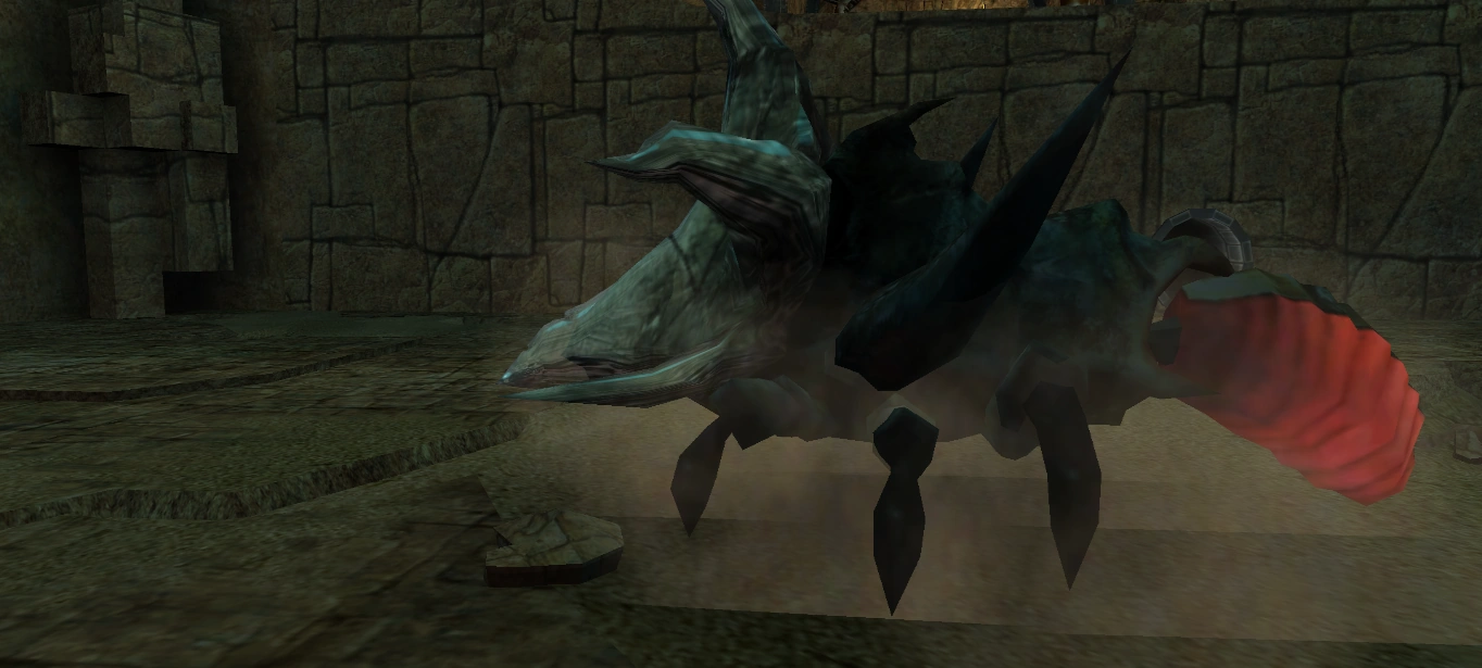 "The Beetle is an extremely aggressive burrowing insect. Its massive mouth enables it to tunnel through solid rock at high speeds. Above ground, Beetles can cover short distances rapidly. They attack anything that moves near their lair.