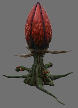 Bloodflowers are poisonous plants native to the Tallon Overworld. They appears as large pods composed of four petals that usually remain closed. At their base appear to be root structures resembling small mouths, which contain the plant's brain system. Bloodflowers are normally dormant until they sense a threat, in which case they become agitated and will attack.