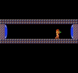 Samus about to shoot at a Blue Door.