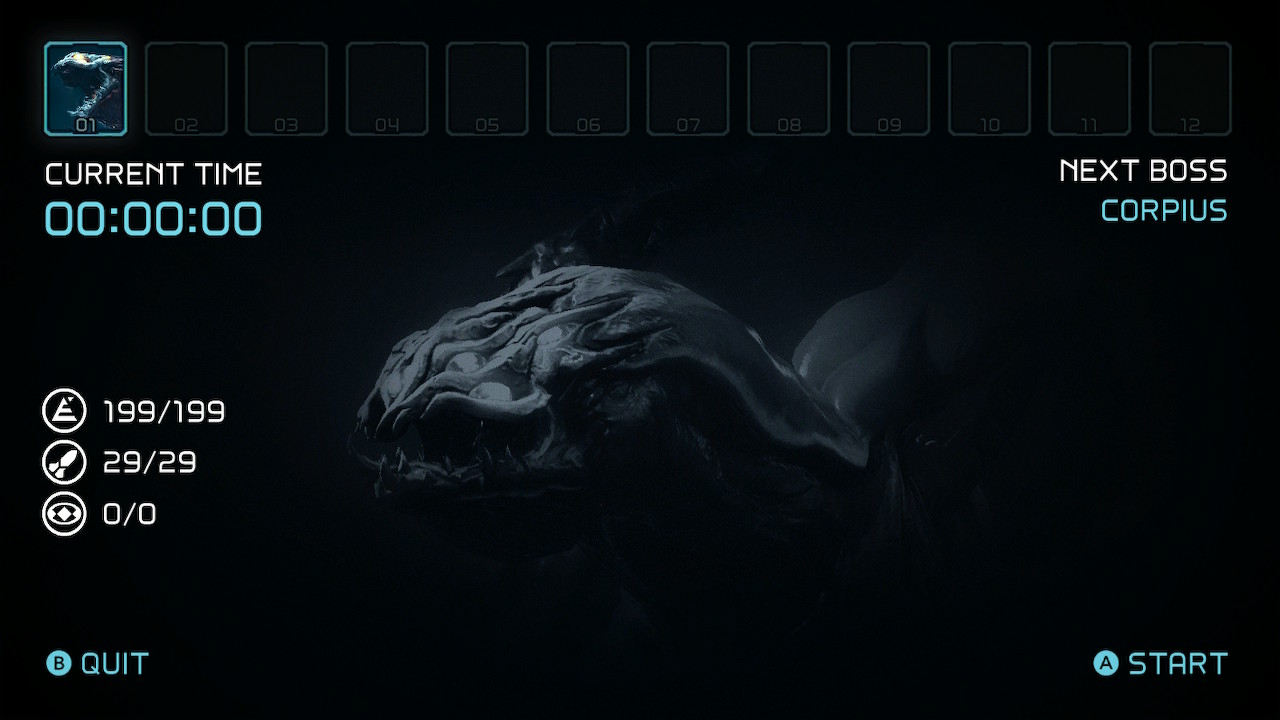 Bosses can be practiced individually, but only if Samus has already reached them on a run in the sub-mode she wishes to practice in; thus, only Corpius is available for practice from the start in either Boss or Dread Rush. Practice runs use their own recorded time.
