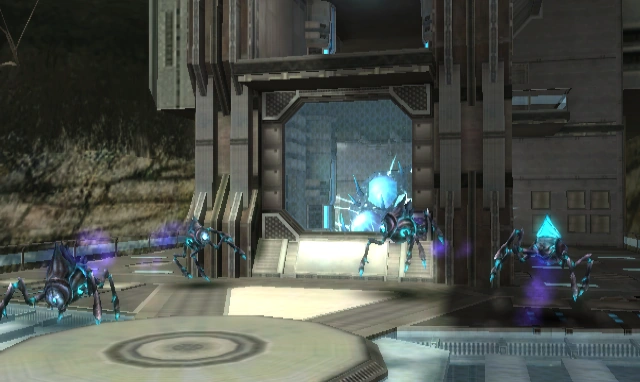 This is an open room displaying the outside portions of the Norion base, with a distinct map on each end of the room used for navigational purposes. This room is a Landing Site, similar to Cargo Dock A. However, Samus cannot immediately land her Gunship here until it has been cleared of all enemies. When she enters the room, the door will lock behind her and the door leading to Generator B is shown to be obstructed by a Phazon Blocker.