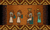 A wall engraving showcasing a young Samus with her Chozo parents.