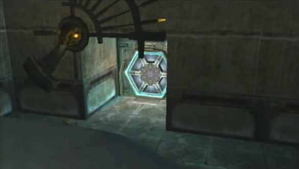 A Chozo Shaman is depicted in a statue attached to a gate resembling a fan in the Chozo Ice Temple of Metroid Prime. It blocks the path to the Chapel of the Elders, and is etched with instructions on how to open it. Samus must find a Shaman bust composed of Brinstone nearby, destroy it, and use the Bomb Slot behind it to lift the gate.