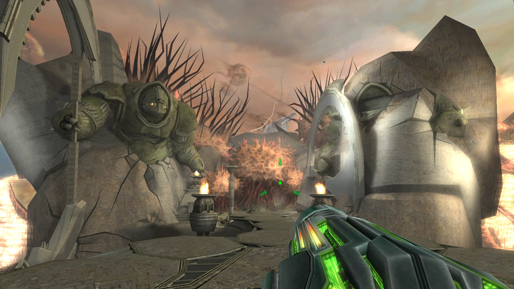 Cliffside Airdock is the first area that Samus Aran sets foot on Bryyo in the Bryyo Cliffside. True to its name, the Cliffside Airdock consists of a landing pad for Samus's Gunship to land on, overlooking a large canyon. The landing pad is connected by a stone bridge to a wide area, with unfinished Mogenar-Class War Golems on either side of the open entrance. The natural flora and fauna here consist of Bryyo Bees, Bryyo's large thorn plants, Kashh Plants, as well as a few toxic Spaikk bushes. On Samus's first visit, a Reptilicus Hunter can briefly be glimpsed watching her from a ledge above the Airdock's only door, but quickly departs.