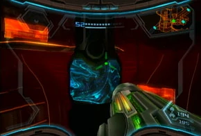 This room is also returned to when Samus is on her mission to deliver the Command Codes to the Leviathan Battleship. The organic mass in this room blocks entry to the Transit Station that leads to the Leviathan warp portal. Samus must use her Hyper Grapple to overload and remove the mass.