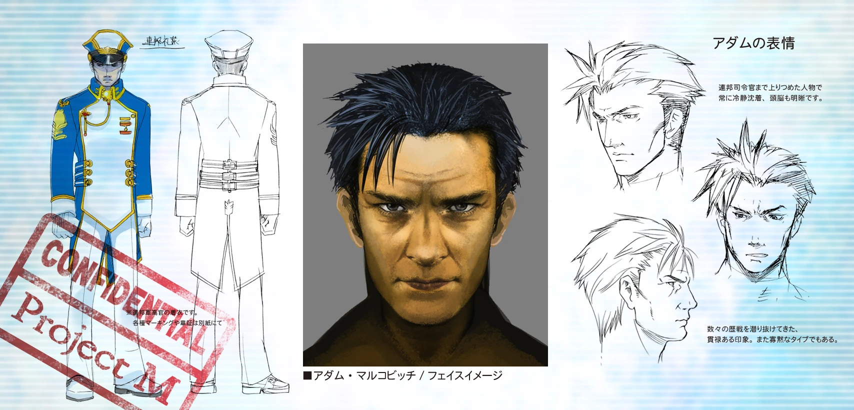 Adam Malkovich appears as one of hundreds of unlockable Spirits. His appearance is taken from the Other M render of Adam in his Federation Formal Dress. Adam is a Primary Spirit with the Shield type, Novice class, and two Support Spirit slots.