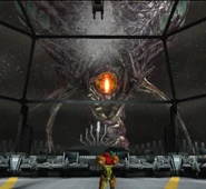Samus returns to the BOTTLE SHIP after her main directive is completed and passes through here on her personal objective to retrieve Adam's helmet. Upon arriving at the Control Bridge, the figure of Phantoon emerges from outside the viewing windows of the room and does battle with Samus once again. During the battle, the creature completely removes the windows of the Control Bridge, exposing the room to the vacuum of space and allowing Phantoon greater access to the room to attack Samus. Samus counters this by enabling her Gravity Feature to remain grounded in the room. Samus lands a finishing blow on Phantoon, causing it to fall back screaming into space and explode. After its defeat, a Grapple Point activates in the east of the room, allowing Samus to reach a high ledge and leave the Control Bridge.