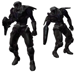 Dark Troopers are the bodies of Galactic Federation troopers that have been possessed by the Ing, appearing in the Temple Grounds on Aether in Metroid Prime 2: Echoes.