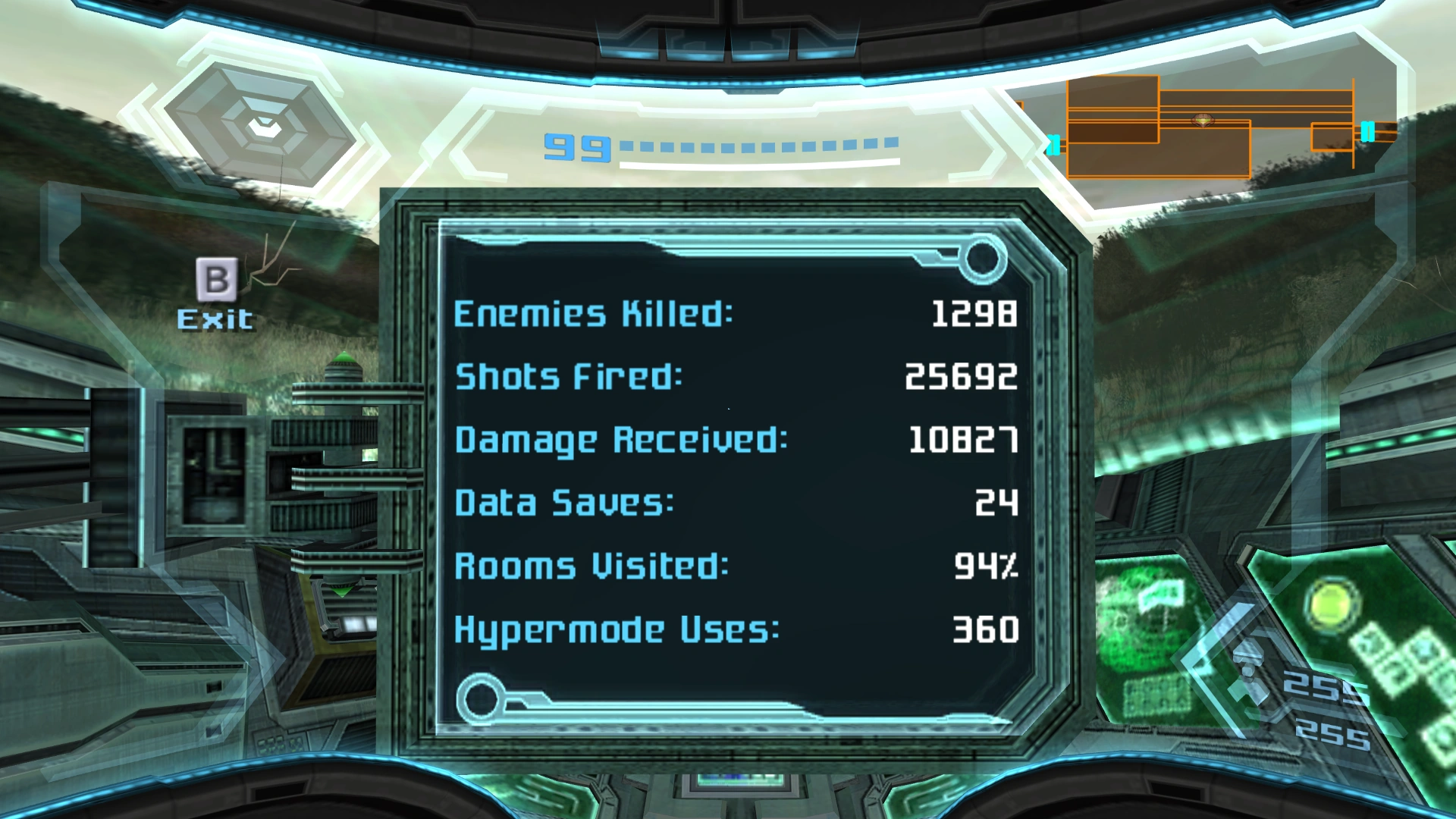 Data records are records that are tracked during Metroid Prime 3: Corruption. They can be accessed from Samus Aran's Gunship through a switch on the left side, which summons a panel similar to that found on a Biohazard scanner, also a feature in the ship. Records collected include the number of enemies killed, number of shots fired, units of damage received, number of saves, a percentage of rooms visited and the number of times Hypermode has been used (displays after PED Suit acquired). The enemy kill number was also present in Metroid Prime Hunters. It is helpful for determining how many kills are needed for all ten Friend Vouchers rewarded for every 100 kills up to 1,000.