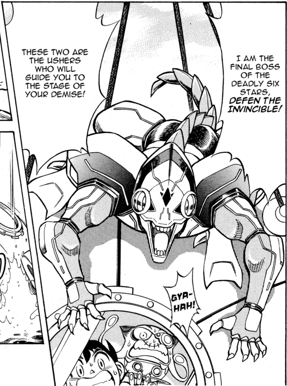 Defen (ディーフェン Dīfen) (also known as Defen the Invincible) was the final boss of the Deadly Six Stars in chapter 6 of Metroid EX. A lizard-like being, he dropped Rastodon, a massive acidic sea monster into the pure water of the ocean world and turned it into a bog of sulfuric acid. He possessed the Data Capsule containing Samus Aran's stolen Varia Suit, which protected him from the acid.