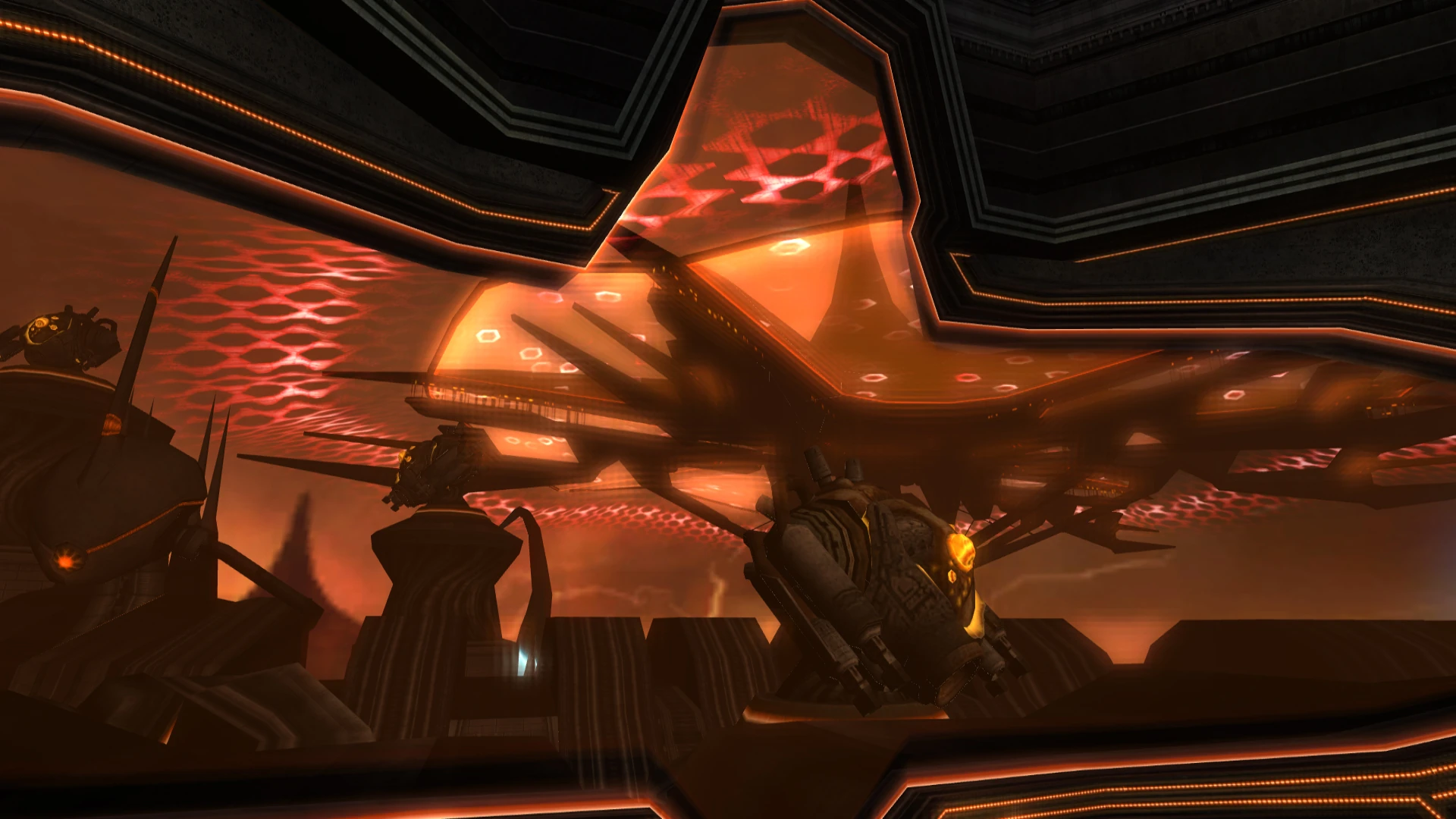 The deactivated defense system, with a Stiletto-Class Fighter attacking the Pirate Homeworld.