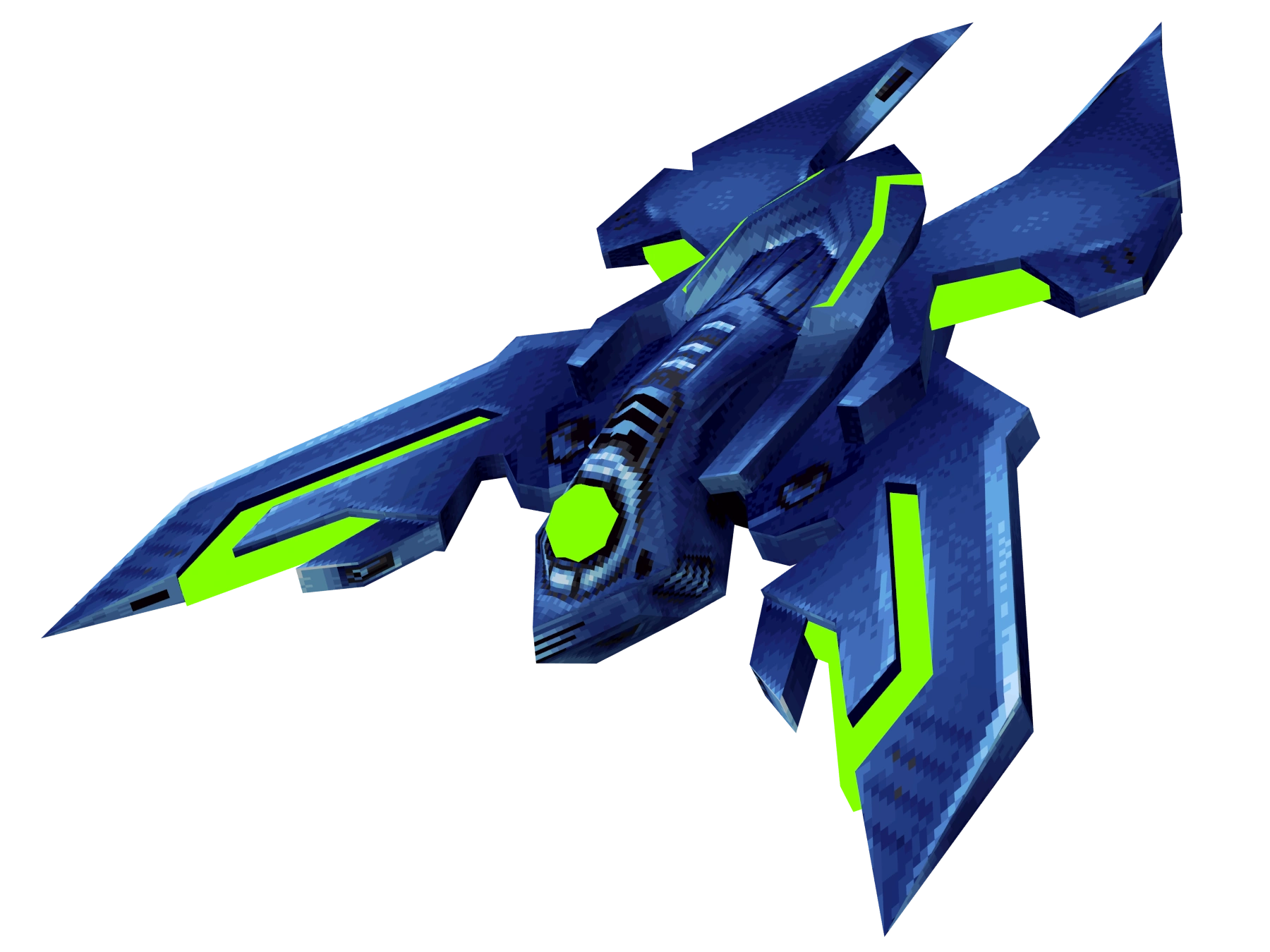 Clad in the same blue metal and green lights as Sylux's armor, the Delano 7's wings are arranged in a vague X-shape, and it produces a contrail of blue smoke when in flight. Its underside sports a powerful cannon that can be remotely set to automatically fire on targets; however, a design flaw causes the cannon to become briefly disabled if the ship receives enough direct hits.