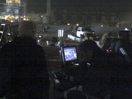 To create the eerie setting, the commercial was shot at night, with only the gravedigger’s goggles, the headstones, and his shovel providing light in the shots. A futuristic city would provide the backdrop, and Wiseman felt it was important to also provide an “old world” tone, with much of the technology shown looking used and gritty. The gravedigger was filmed alone on set, with only a few graves behind him and fog machines used to create the smog around him. Many of the commercial’s details, like the hovercraft, the hundreds of other graves, and the city backdrop were CGI.[1]