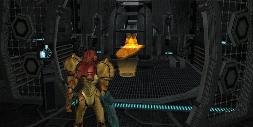 In Metroid Prime and Echoes, sound banks for each area are loaded in while Samus is riding elevators, with the cutscene acting as a hidden loading screen. Jack Mathews added a crossfade effect when Samus arrives at her destination, which he was particularly proud of.[3] He also hard-coded the cutscenes, meaning that the shafts in between elevator rooms are not rooms themselves.[4]