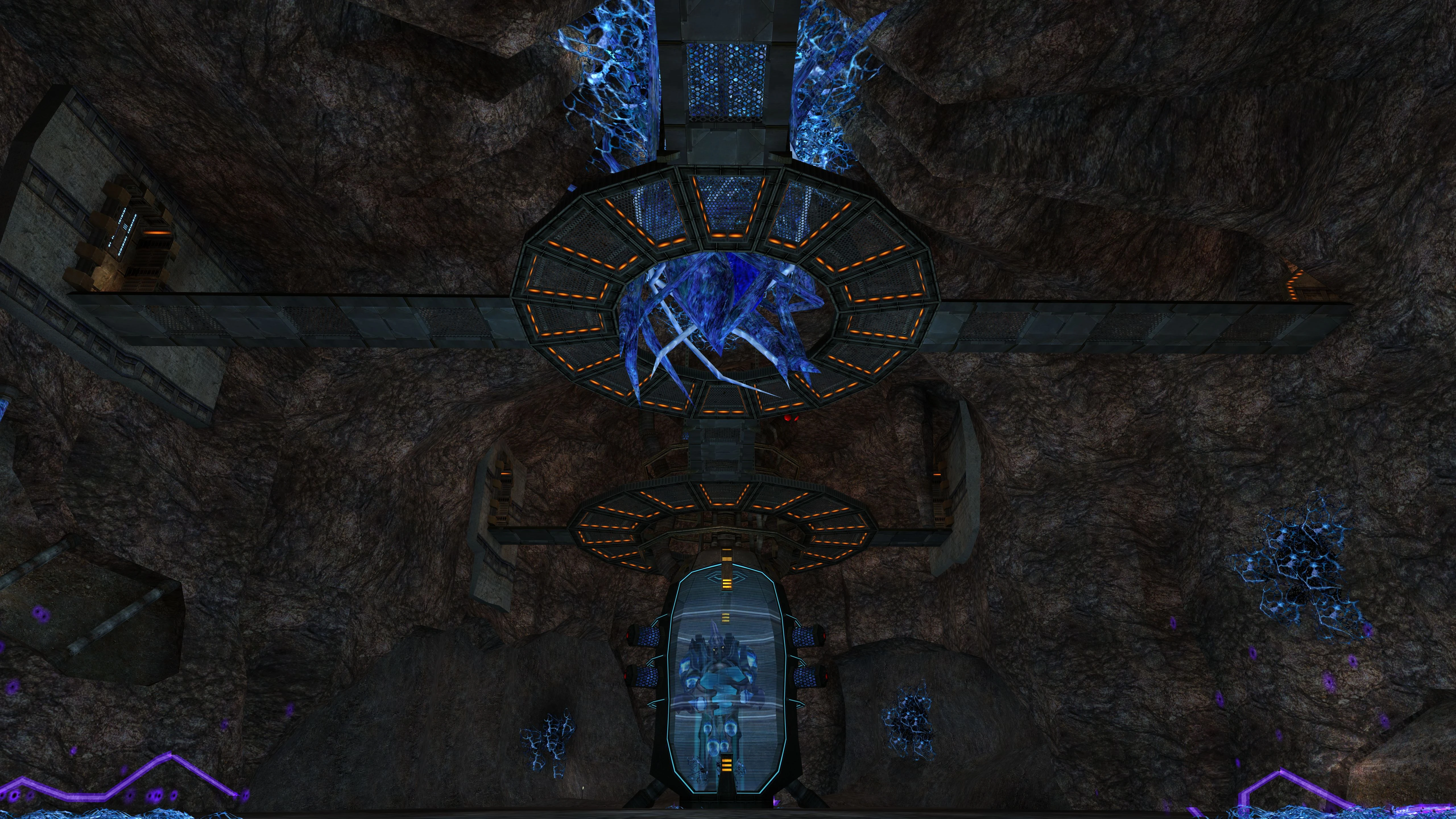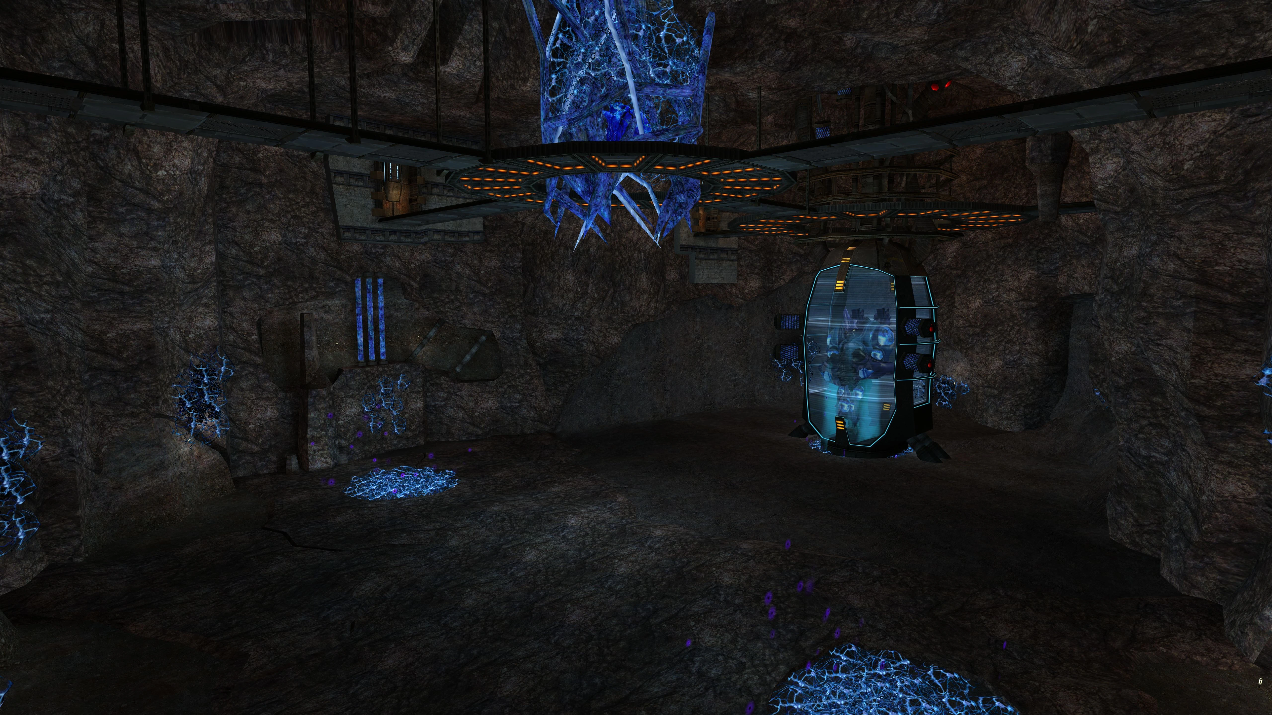The Omega Pirate rests in the center of the chamber in a stasis tank below a huge glob of pure Phazon. There are doors that are opened regularly to examine the creature's vital signs and if necessary, call in Trooper Pirates for intruder annihilation. Three pools of Phazon sit in the corners and power the stasis tank. The scaffolding in the higher part of the Elite Quarters is an optimal place for Trooper Pirates to drop into battle. When Samus arrives in this room, she faces the Omega Pirate in battle. After its defeat, Samus obtains the Phazon Suit. She can then operate a lift in the room to reach the balcony area.