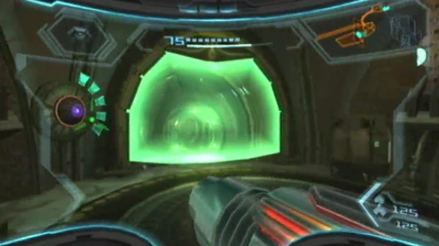 An energy barrier is an energy-powered, transparent barrier, encountered as an obstacle in Powerworks Access during Metroid Prime 3: Corruption. This barrier is in the shape of a partial semi-circle, and light aqua green in color. It covers a tunnel that Samus can navigate with her Morph Ball, and is powered by a Grapple Voltage Terminal next to it. Removing it is as simple as using the Grapple Voltage to drain the terminal completely of its energy, at which point the barrier will disappear.