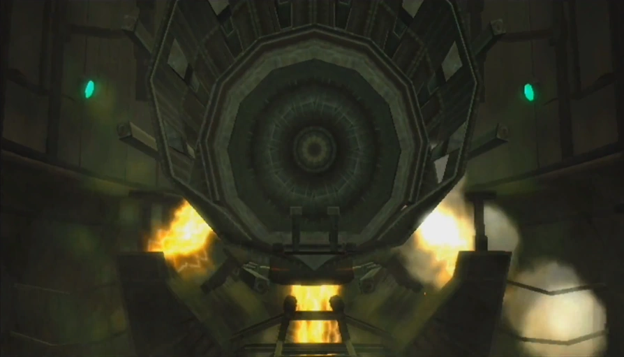 - "Structure appears to be a landing cradle designed for small evacuation pods."