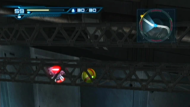 At the start of the room is a pair of ledges that Samus must jump over to continue on. A Groganch will reveal itself and ambush Samus, forcing her hand. After it is killed, Samus will find that the exit, which leads into a Navigation Booth, is locked.